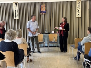 Was mich persönlich am Vesak-Fest am meisten fasziniert hat, ist, dass an einem einzigen Feiertag mehrere Dinge gefeiert werden: Buddhas Erleuchtung, sein Tod (das Verlassen des Kreislaufs der Wiedergeburt) und seine Geburt. Mir gefällt, dass innerhalb einer einzigen Veranstaltung verschiedene Aspekte des Lebens gefeiert werden. Das ist nicht nur praktisch, sondern verdeutlicht auch die Realität der Verbundenheit: Ohne Geburt kein Tod, ohne Tod keine Geburt und ohne Geburt keine Erleuchtung… (zumindest glaube ich das). Die Art und Weise, wie wir Vesak feiern, erinnert mich oft an kirchliche Feste. Jeder bringt etwas zu essen mit, und bei Kaffee und Tee hat man die Möglichkeit, sich auf eine weniger formelle Art und Weise kennenzulernen. Auch die Praxis ist auf eine „leichtere Art“ für Menschen zugänglicher.